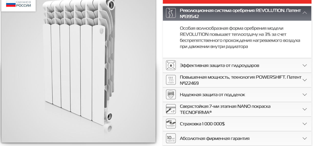 Особая волнообразная форма оребрения модели REVOLUTION повышает теплоотдачу на 3% за счет беспрепятственного прохождения нагреваемого воздуха при движении внутри радиатора.