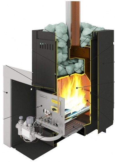 Лаборатория света и тепла » Печи для бани и отопления » Печи банные » Банная газо-дровяная печь Каминика ПБ 22-У/Г