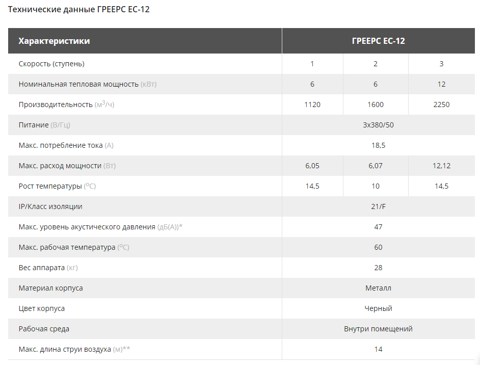 Электрический тепловентилятор ГРЕЕРС ЕС-12