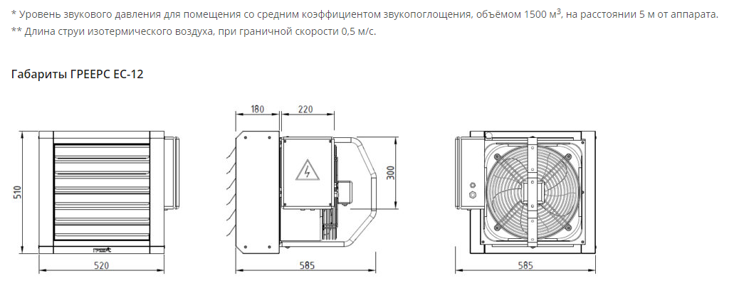 Электрический тепловентилятор ГРЕЕРС ЕС — элемент децентрализованной системы отопления, который предназначен для отопления складских помещений, производственных комплексов, торговых помещений, очистных сооружений, подземных паркингов, спорткомплексов, сельскохозяйственных объектов. Модель укомплектована монтажной консолью и пультом управления TDS.