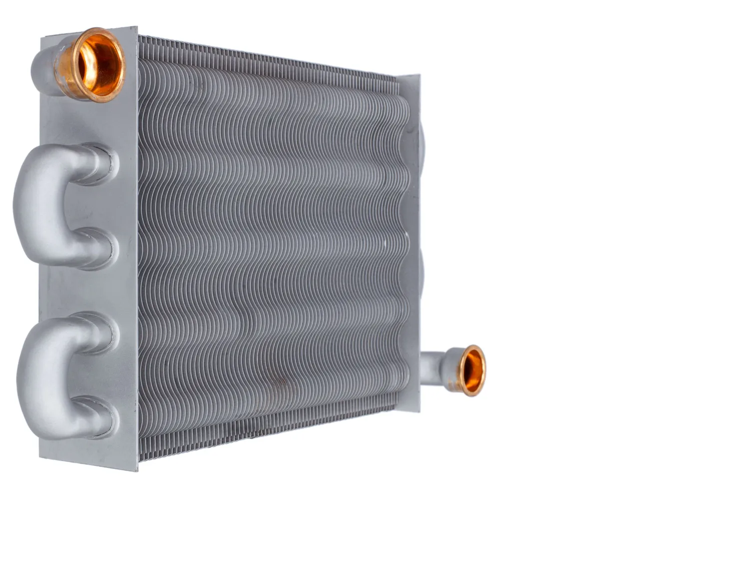 Между собой трубки разделены множеством медных пластин, обеспечивающих значительную площадь поверхности теплообмена.