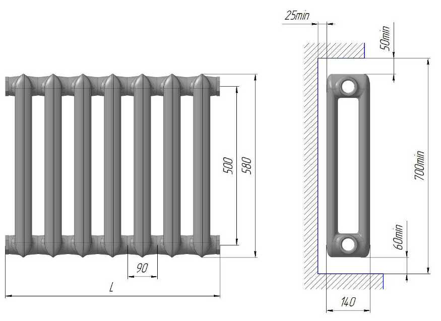 Лаборатория света и тепла » Отопительное оборудование » Радиаторы отопления » Чугунные » Радиатор МС-140М 500 4сек. Нижний Тагил