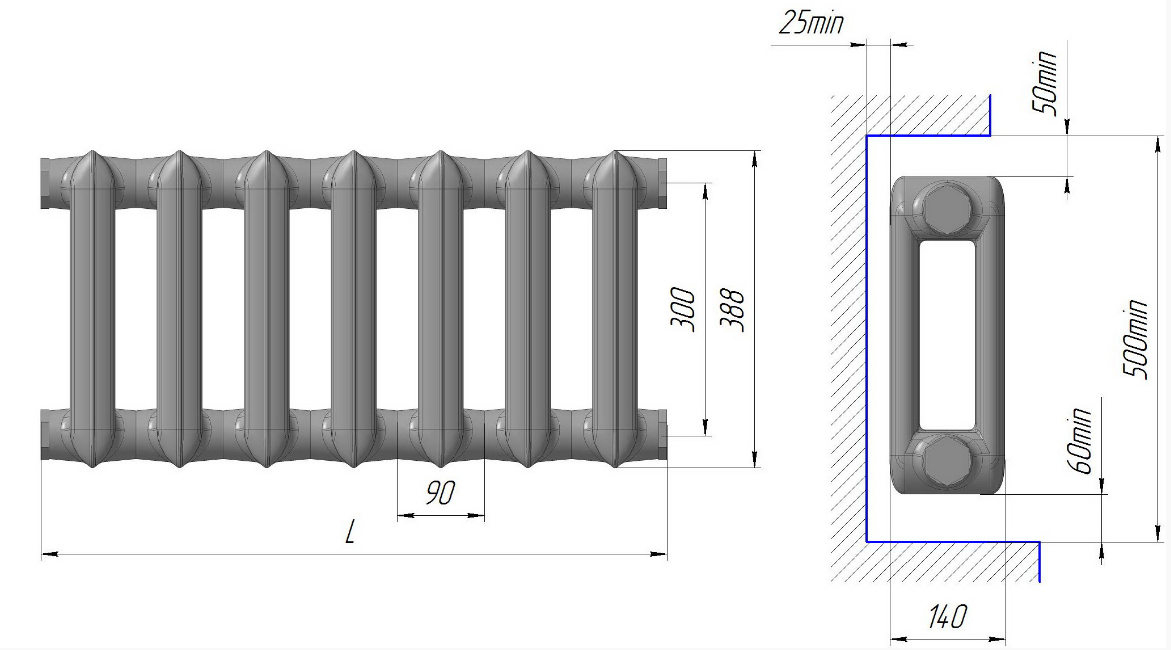 Лаборатория света и тепла » Отопительное оборудование » Радиаторы отопления » Чугунные » Радиатор МС-140М-300 4сек. Нижний Тагил