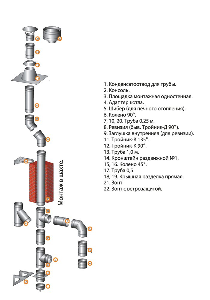 Комплектация дымохода обсуждается с каждым заказчиком отдельно, из-за разных характеристик помещения.