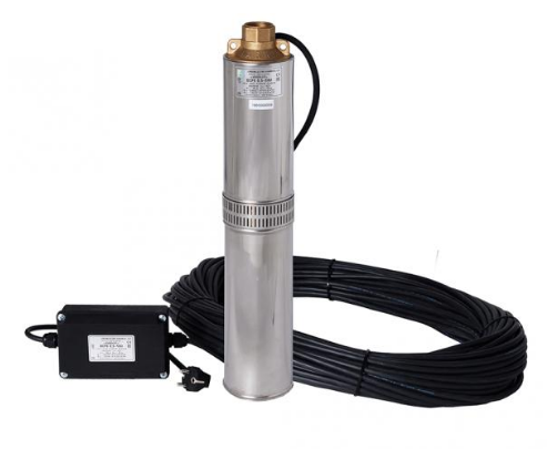 Бытовой Центробежный Погружной Электронасос для колодцев и скважин диаметром от 110 мм, с номинальным напором 50 метров, предназначен для перекачивания чистой воды в бытовых условиях. Производитель: ООО "Промэлектро-Харьков"