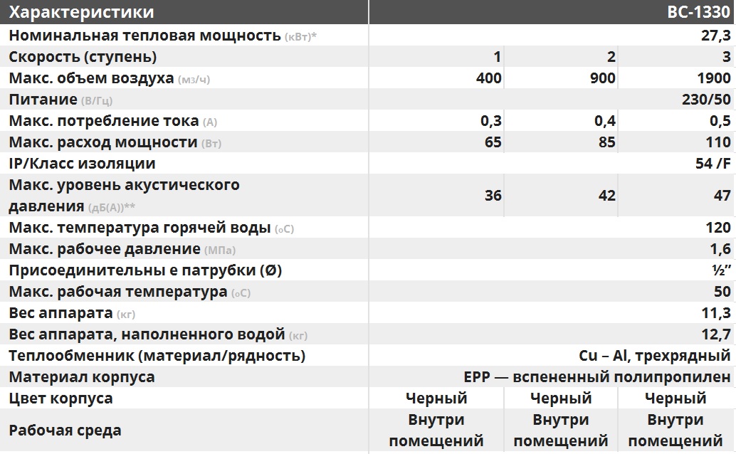 Тепловентилятор ГРЕЕРС ВС-1330 предназначен для отопления складских помещений, производственных комплексов, торговых помещений, подземных паркингов, спорткомплексов, сельскохозяйственных объектов, теплиц и автомоек. Модель оснащена встроенным трехскоростным двигателем и монтажной консолью. Корпус выполнен из вспененного полипропилена (ЕРР), благодаря чему гарантируется прочность и защита от химических веществ.).