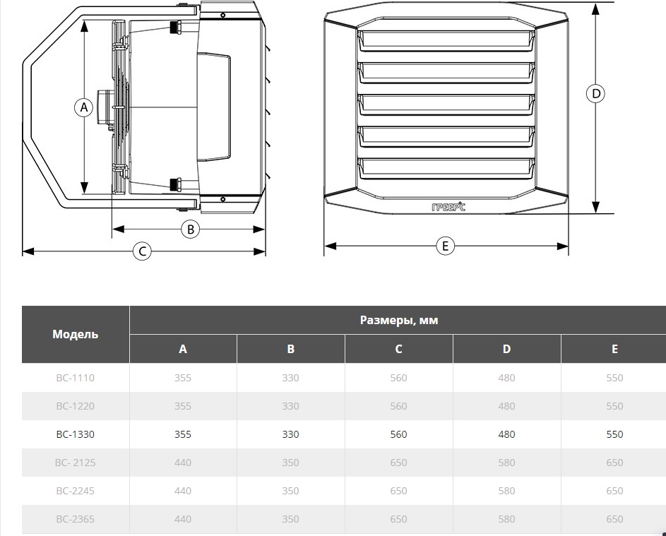 Тепловентилятор ГРЕЕРС ВС-1330