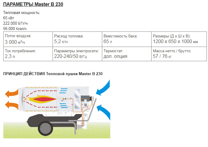 Лаборатория света и тепла » Отопительное оборудование » Тепловые пушки, горелки и нагреватели » Тепловые пушки прямого нагрева » Дизельная тепловая пушка прямого нагрева Master B 230