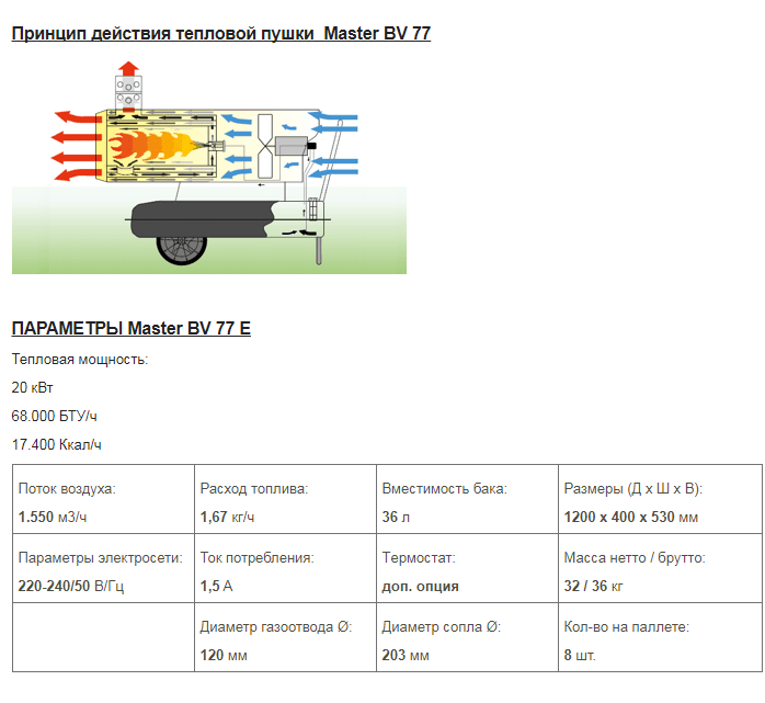 Дизельная тепловая пушка непрямого нагрева Master BV 77 E