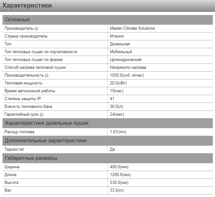 Мощность кВт. — 20 Поток м³/ч. — 1550 Расход кг/ч. — 1.67 Температура на вых. ºС — 93 Вес кг. — 32.