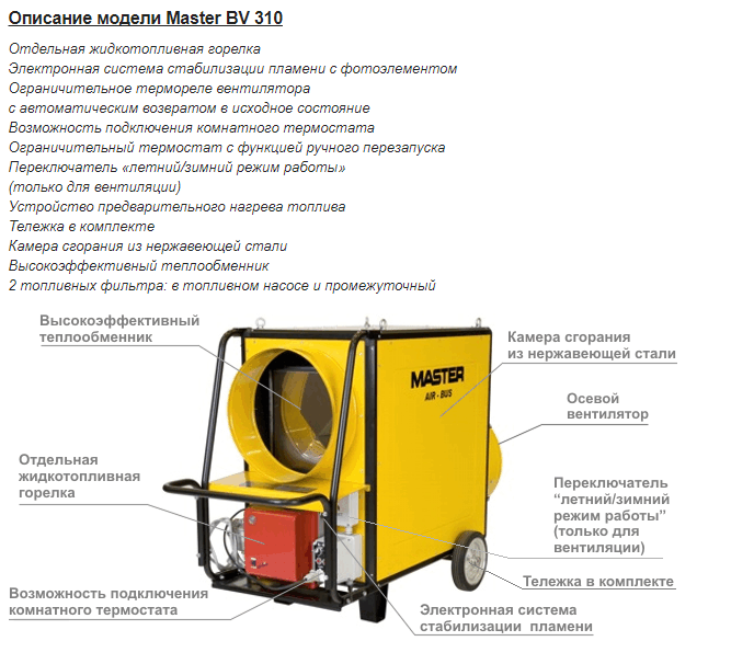 Лаборатория света и тепла » Отопительное оборудование » Тепловые пушки, горелки и нагреватели » Тепловые пушки непрямого нагрева » Дизельная тепловая пушка непрямого нагрева Master BV 310 FS