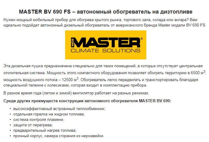 Дизельная тепловая пушка непрямого нагрева Master BV 690 FS