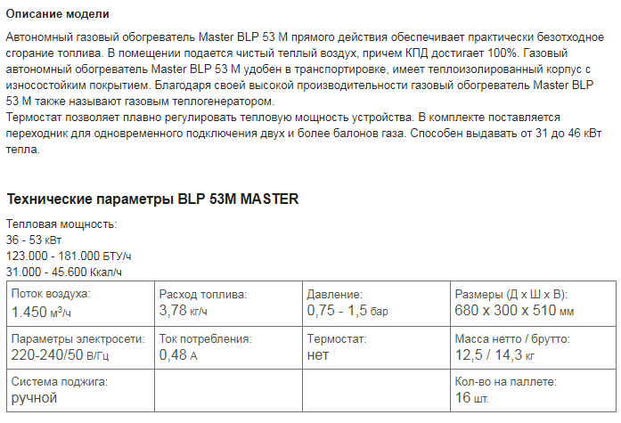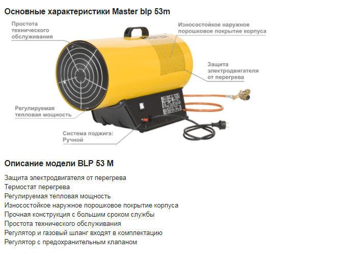Лаборатория света и тепла » Отопительное оборудование » Тепловые пушки, горелки и нагреватели » Газовые нагреватели » Газовый нагреватель Master MASTER BLP 53M