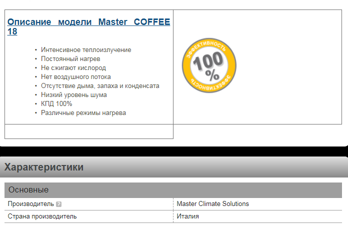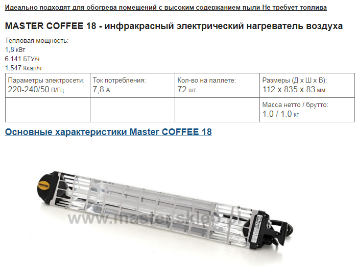 Инфракрасный нагреватель MASTER COFFEE 18. Идеально подходят для обогрева помещений с высоким содержанием пыли.