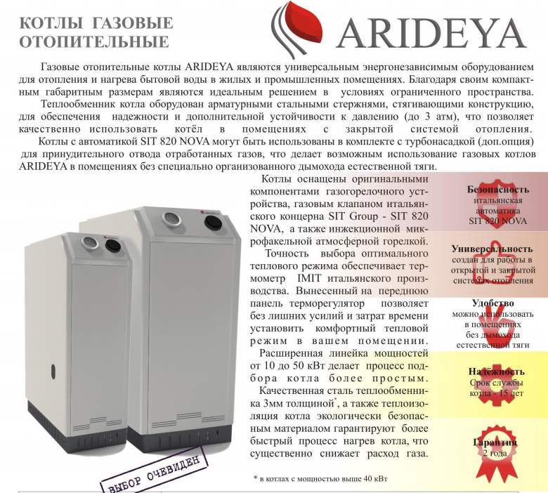 Итальянская автоматика NOVA Sit 820, микрофакельная горелка. Регулятор температуры вынесен на переднюю панель котла. Возможность подключения комнатного термостата для комфортного регулирования температуры в помещении. Возможность установки турбонасадки для принудительного дымоудаления. Рабочее давление 3 Атм. Разрешено использовать в системах отопления закрытого типа.