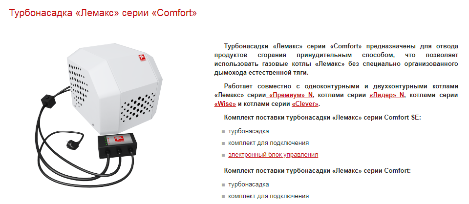 Турбонасадка модернизированная серии «Comfort SE» с блоком управления для энергонезависимых котлов ЛЕМАКС серии «Премиум N» и «Лидер N».