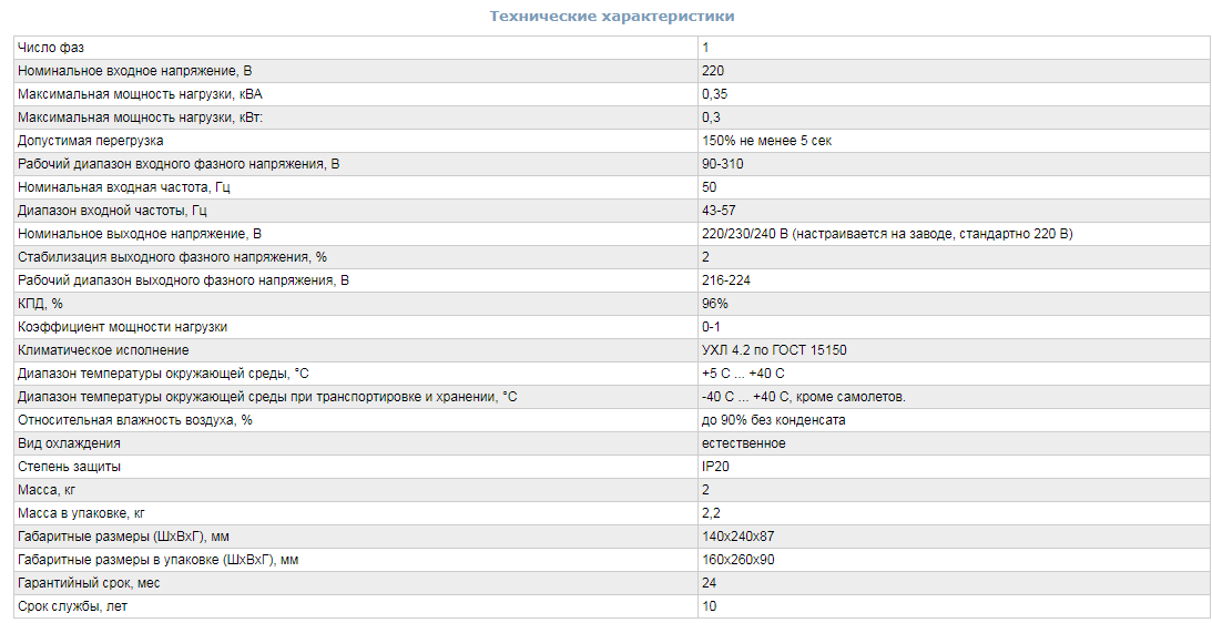 - Полная электронная защита нагрузки и самого стабилизатора от короткого замыкания, перегрузки, пониженного и повышенного напряжения на входе, перегрева.