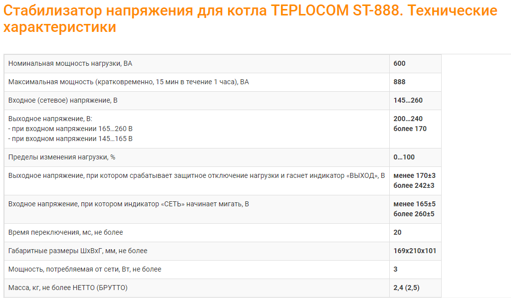 Стабилизатор напряжения для котла TEPLOCOM ST-888