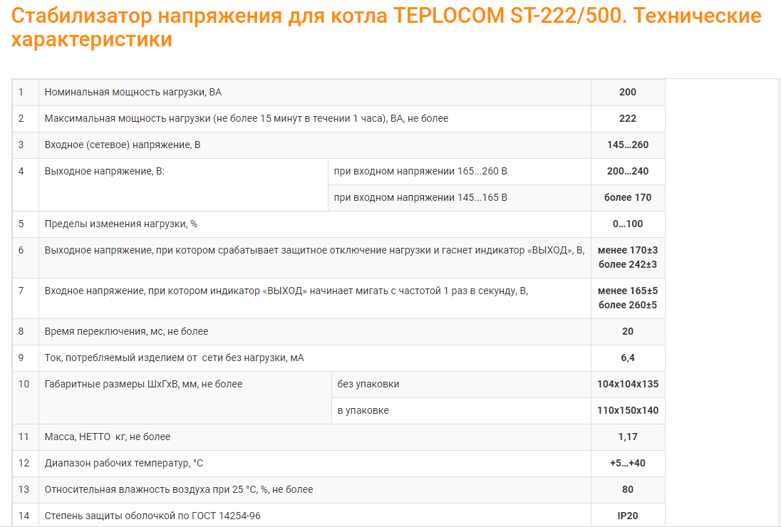Стабилизатор напряжения для котла TEPLOCOM ST-222