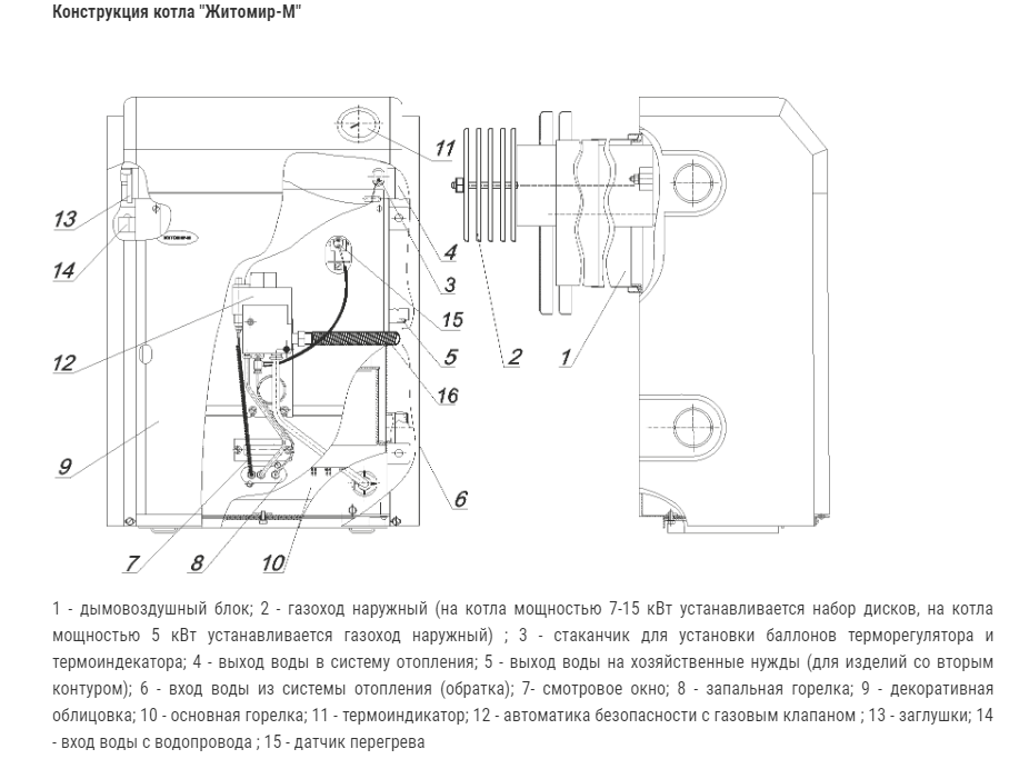 Газовые котлы “Житомир-М” - это оптимальное решение для отопления помещений необорудованных дымоходом. Отвод продуктов сгорания и забор свежего воздуха осуществляется через внешнюю стену помещения. Все котлы серии “Житомир-М” имеют герметичную камеру сгорания, что обеспечивает высокую безопасность эксплуатации и возможность установки в многоэтажных зданиях (квартирах) Все модели комплектуются автоматикой 630 EUROSIT (Италия), которая имеет встроенный газовый редуктор, пьезорозжиг, датчик пламени и датчик перегрева, а горелки POLIDORO позволяют добиться наиболее эффективного сгорания газа, а соответственно высоких показателей КПД и экономичности. Каждый выпущеный котел подвергается семи видам испытаний на надежность, в ходе которых он испытывается в рабочих и экстремальных режимах.