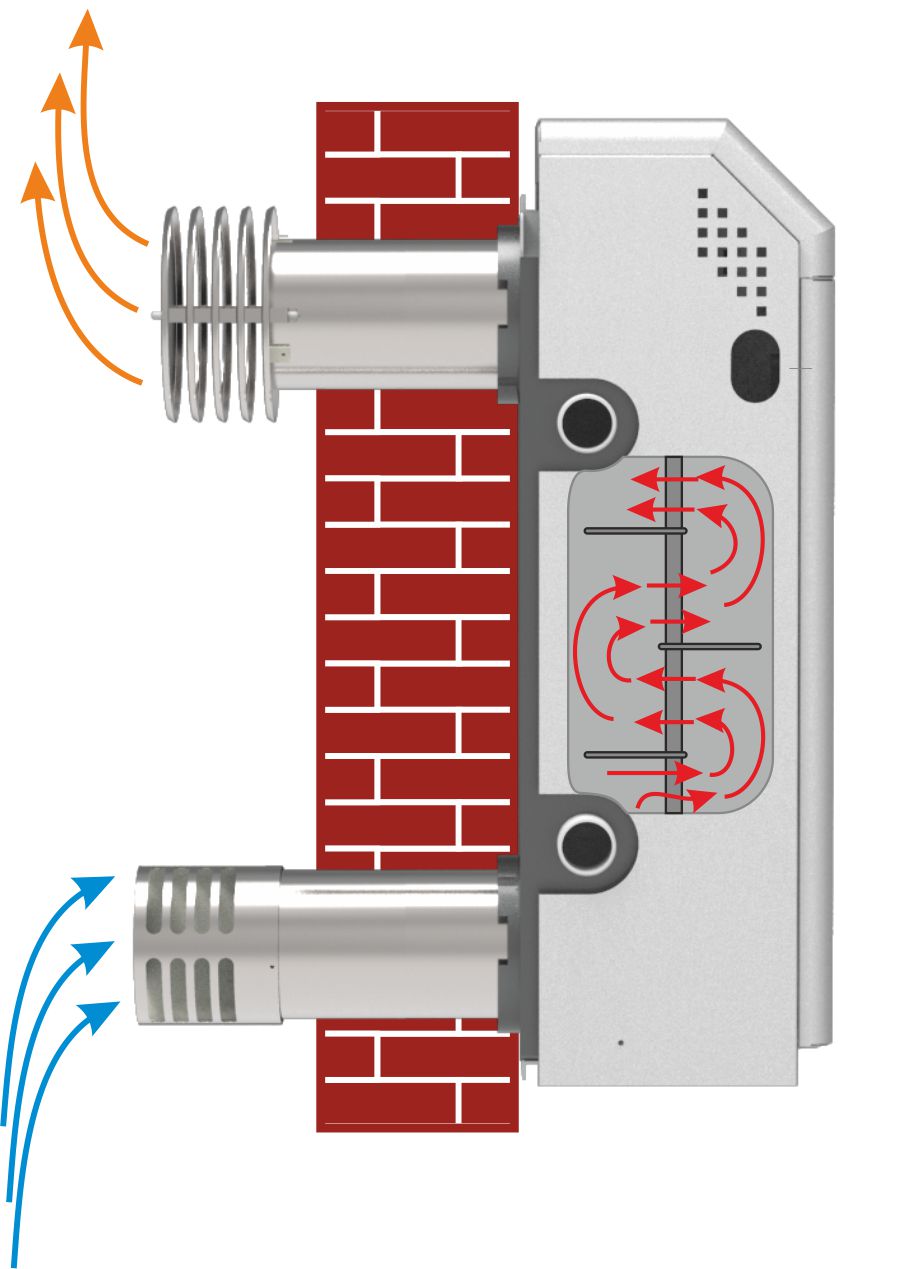 • Уменьшенный размер воздушной и дымовой трубы (минимальные потери тепла из котла)