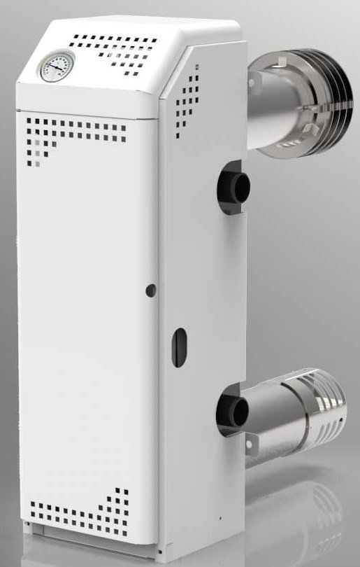 - Уменьшенный размер воздушной и дымовой трубы (минимальные потери тепла из котла)